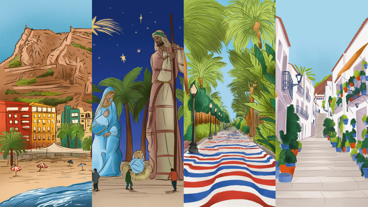 Ilustrado a mano con los rincones más especiales de Alicante ✨